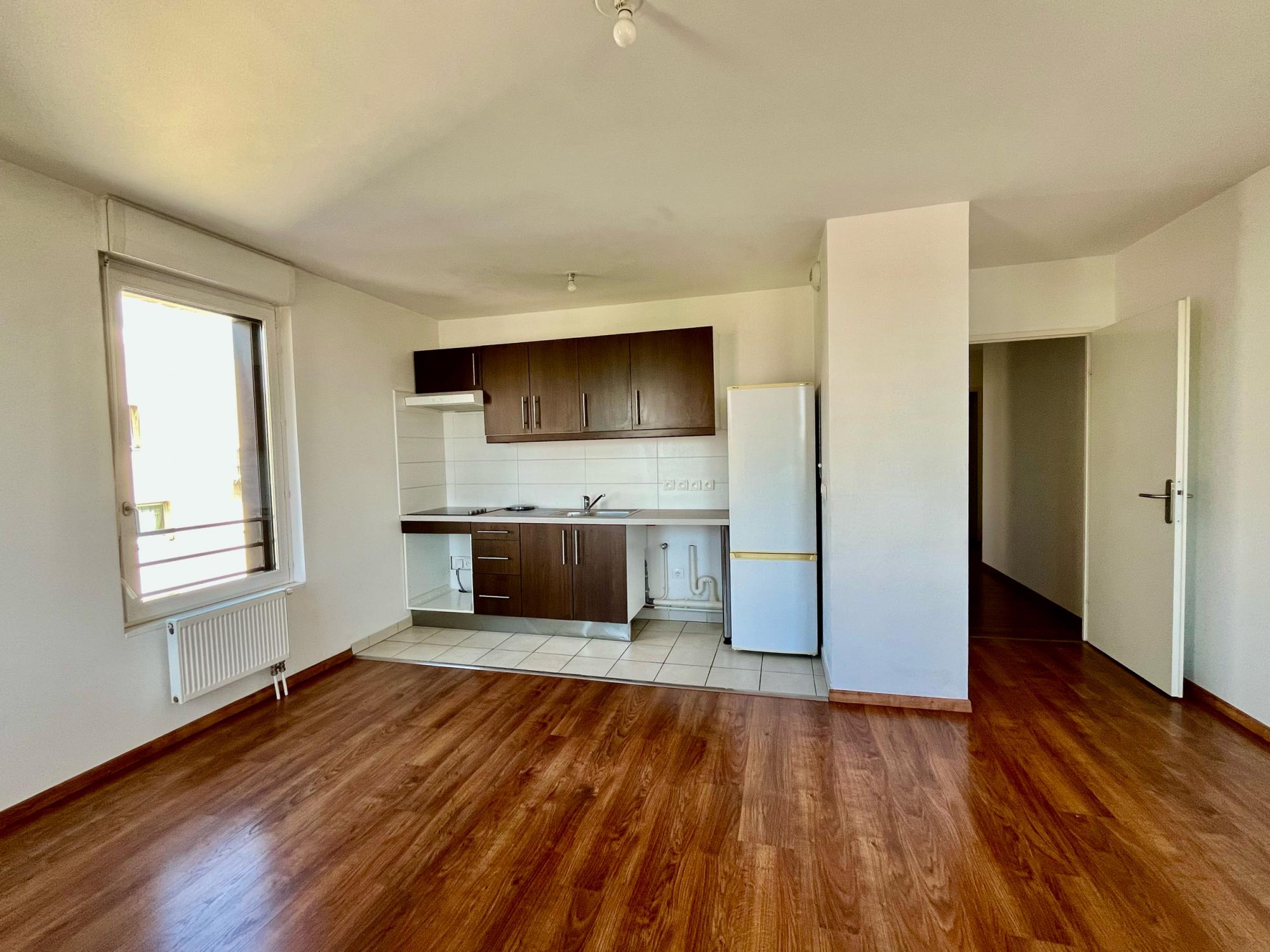 Ce T3 se compose d'une pièce de vie spacieuse et lumineuse, la cuisine contemporaine s'intègre très bien dans le séjour .