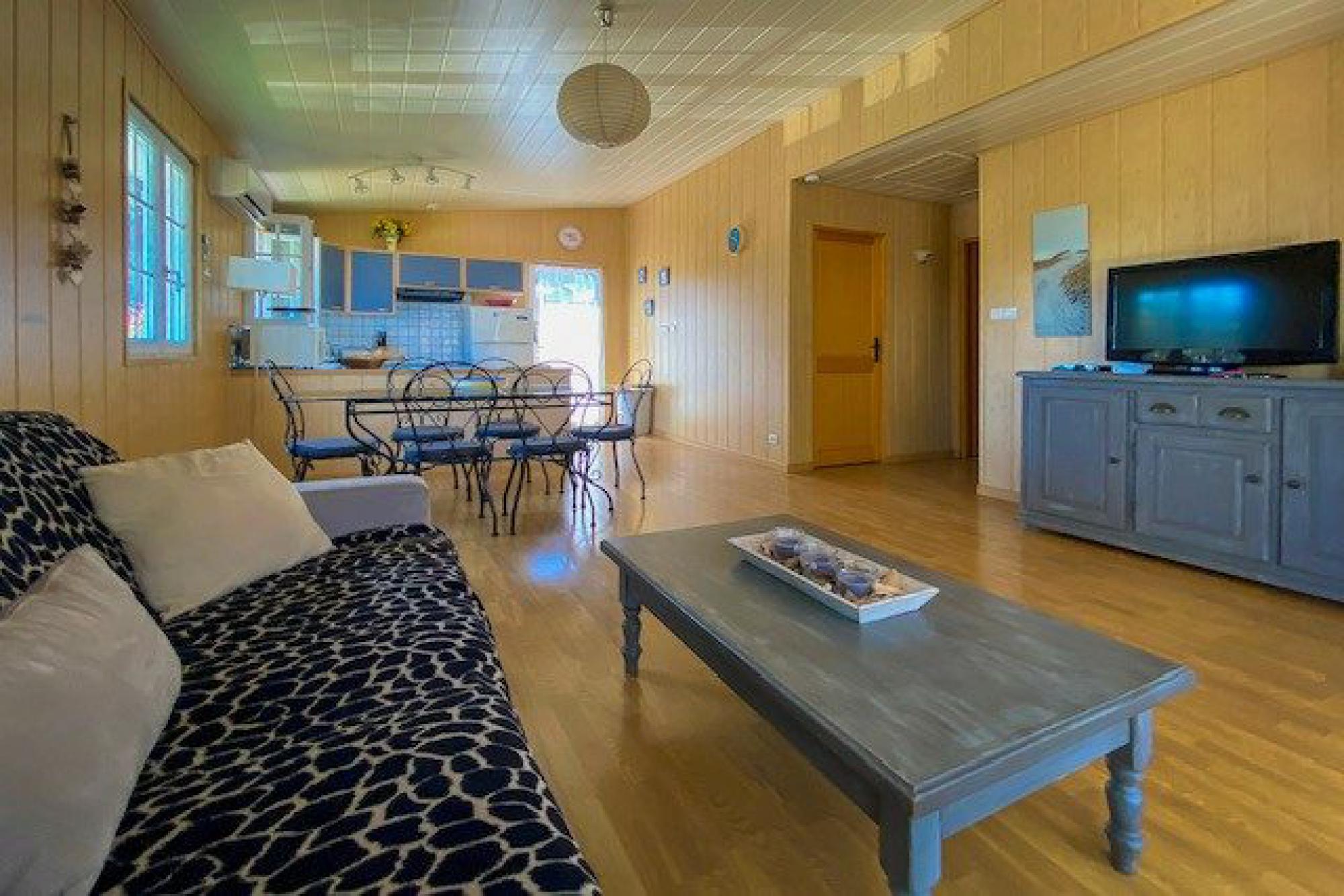 Il est composé d'une grande et lumineuse pièce de vie traversante avec cuisine ouverte. De chaque côté, vous trouverez deux terrasses dont une ombragée, parfaite en période estivale.
